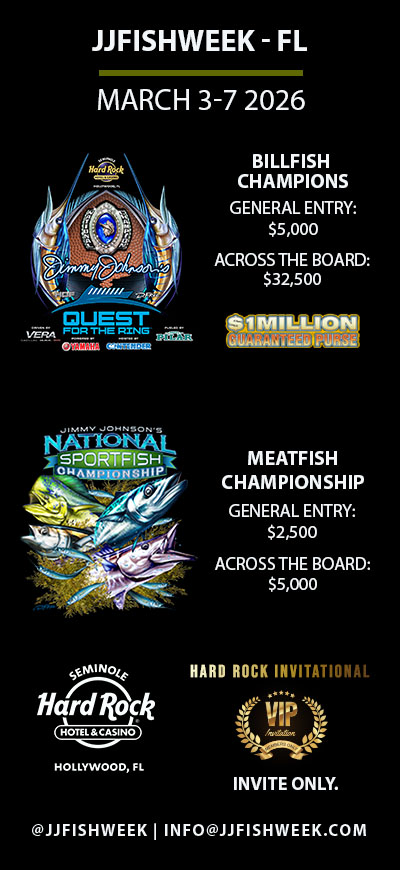 The 2026 JJFISHWEEKFL is brought to you by Seminole Hard Rock Hotel & Casino, powered by Yamaha Motors, hosted by Contender Boats, fueled by Papas Pilar Rum, and driven by VERA Motors.