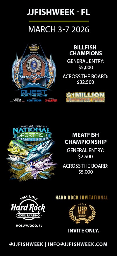 The 2026 JJFISHWEEKFL is brought to you by Seminole Hard Rock Hotel & Casino, powered by Yamaha Motors, hosted by Contender Boats, and driven by VERA Motors.